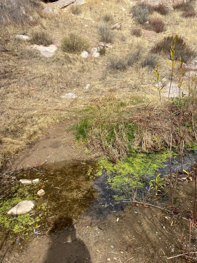 To continue on PCT, I followed the Apwinga Trail down toward Escondido Creek. With the descent, the vegetation changed somewhat from chaparral to a more riparian ecosystem. There was a little water in the trickling creek, enough to wet the soles of my hiking books, but not very high thanks to the dry rainy season. Here I ran into the PCT Trail Gorillas, a volunteer organization who help maintain the Southern California portion of the PCT. I chatted briefly with a couple volunteers to get more information on how to help out. After taking down some info in my notes app- cell signal is pretty nonexistent in the canyon- I continued south toward what I hoped would be the tunnel. I had been getting closer to SR-14 as I trekked along, so I figured I had to be going in the right direction.
