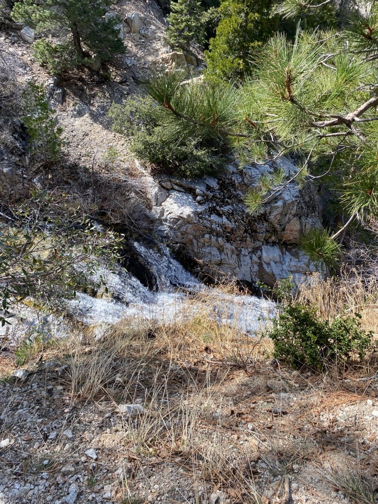 The weather can be changeful in the San Gabriel Mountains. While the day was pleasant, it was about 51 degrees Fahrenheit at the start of the hike with a good breeze. In the canyon it felt warmer, and there wasn’t as much wind. There was also snow along parts of Angeles Crest as well as on the road to Buckhorn Campground. The light puffer I brought came in handy for the start of the hike. I would also check road conditions, especially after storms.
