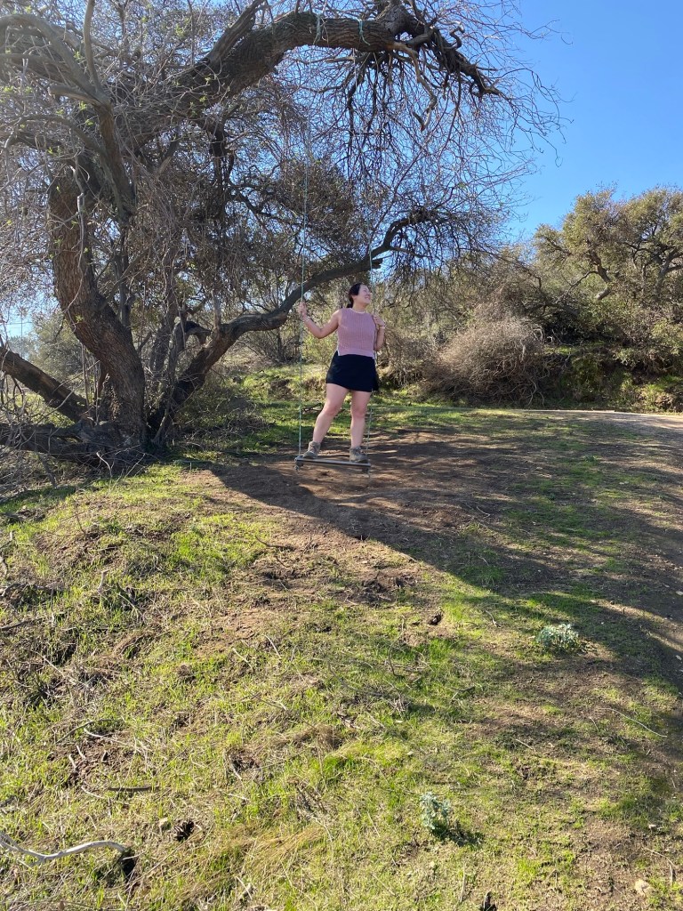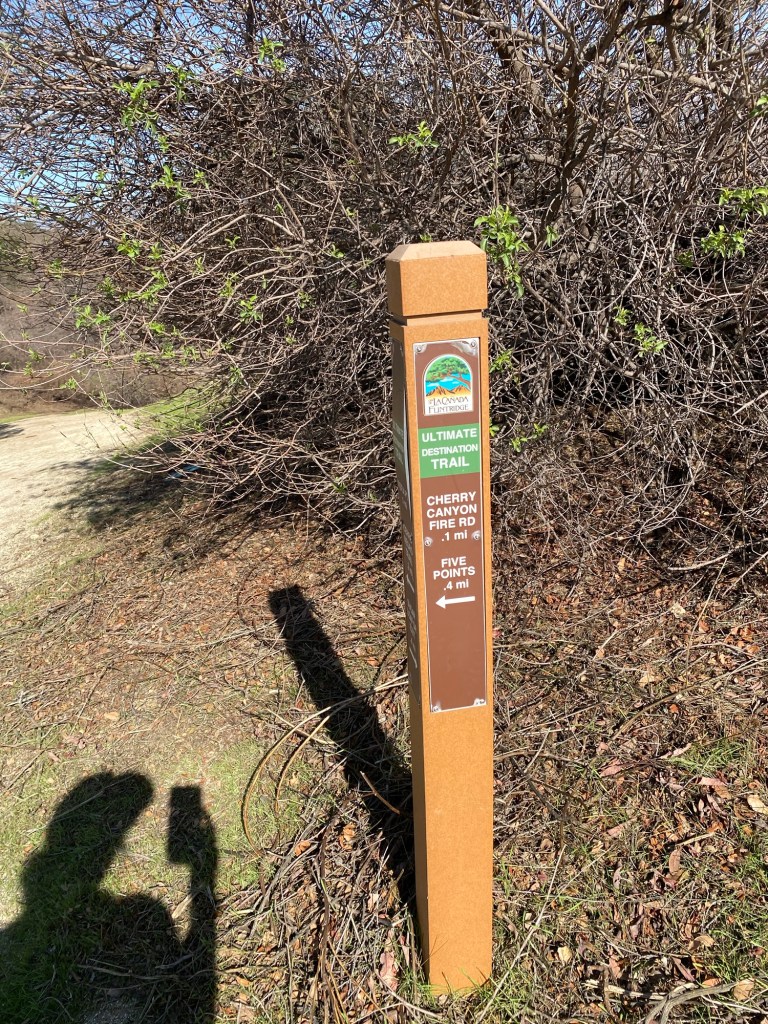 On this particular hike, we entered the park through the mountain bike trail start on Forest Hill. There are several other points of entry- Hampstead Road or the gate near Descanso Gardens– so you can pretty much choose your own adventure. From the Forest Hill entrance, we took the Forest Hill Trail to the Cerro Negro Trail, then followed the signs to Ultimate Destination. My goal was to find the hiker swing I had seen on our last hike through Cherry Canyon. As seen from the photos, mission accomplished.