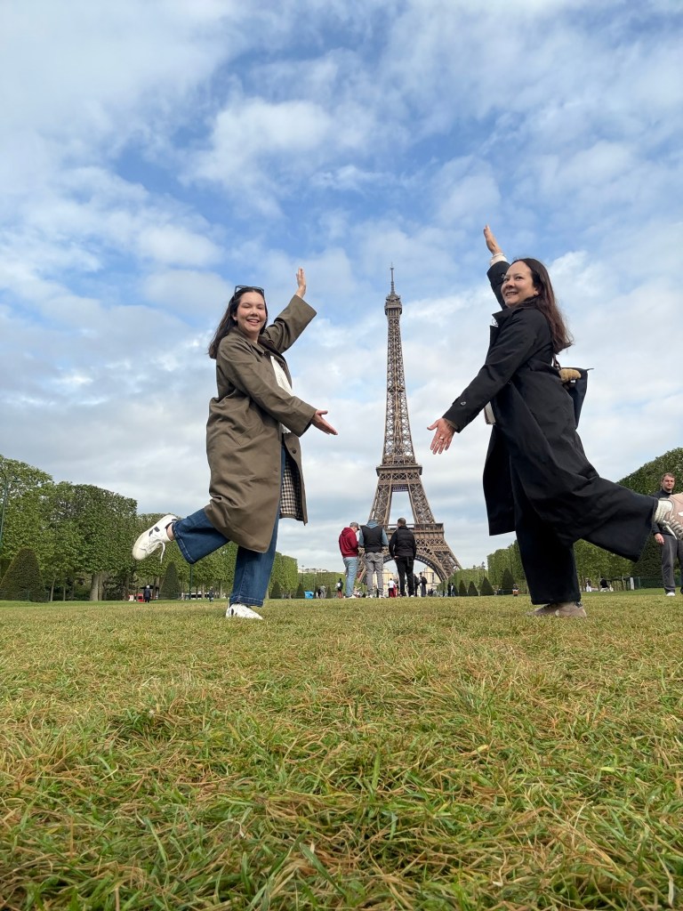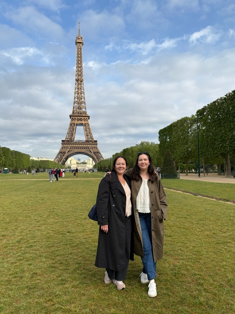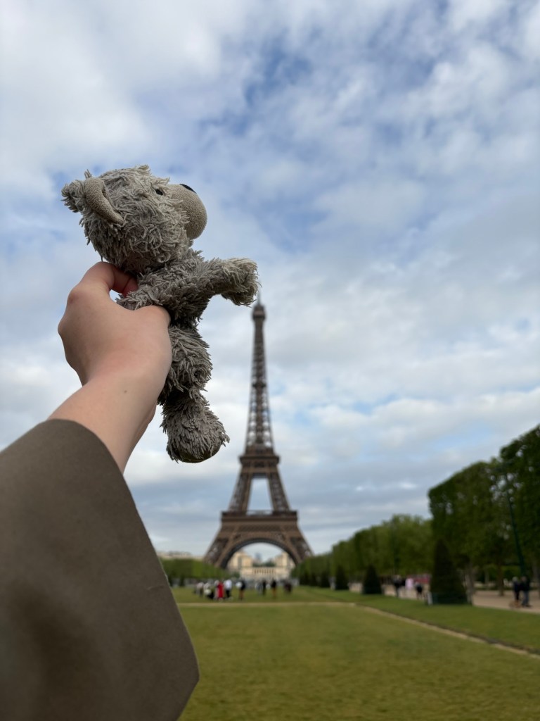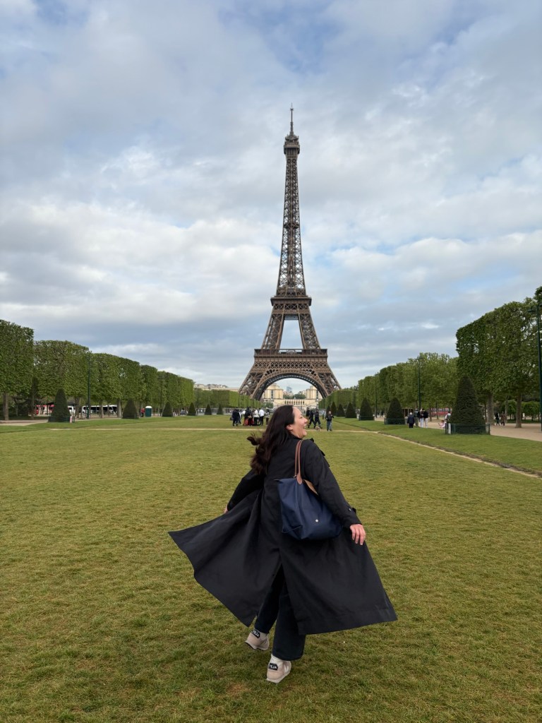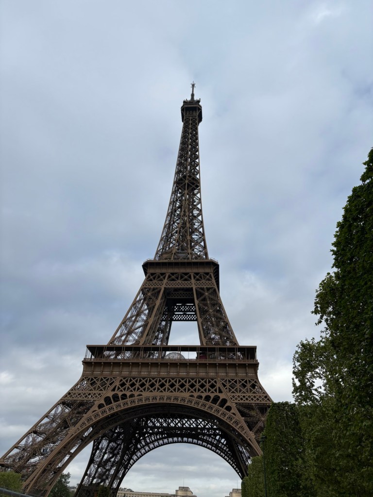 On our last day in Paris, we walked to see the Eiffel Tower during the day. As it was a Tuesday in late April, the park was not super busy. There were a few tourists taking photos, and we met a nice couple who asked us to take their photos. It was amazing to see the Eiffel Tower up close. The detail is stunningly ornate; I don’t feel it can be appreciated as well from afar.
