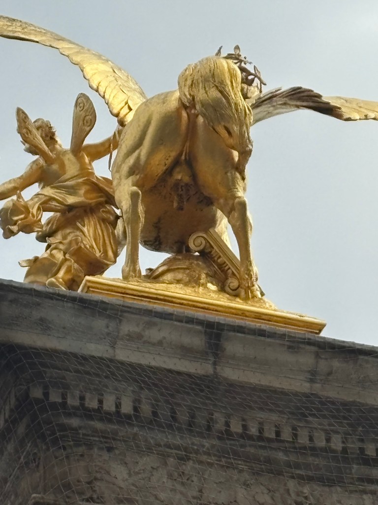 After hanging around the Eiffel Tower, taking silly photos and creating a TikTok, we walked along the Seine. Eventually, we made our way to the Notre-Dame de Paris. Inspired by a very good high school adaptation of the Disney musical I had attended the weekend prior, I wanted to pay a visit and hear the bells of Notre Dame. The medieval cathedral was built in the twelfth century and is designated a UNESCO World Heritage site. It is still a functioning Catholic church, with masses every day of the week, as well as special services for religious holidays. The said, the cathedral is still undergoing construction following a fire in 2019 that caused damage to the roof and spire. Fortunately, there were no fatalities; however, the building was closed through 2024 for repairs. In December 2024, the cathedral reopened to churchgoers and visitors, though construction is expected to continue through 2028.
