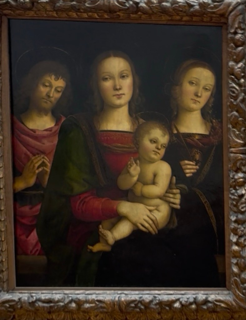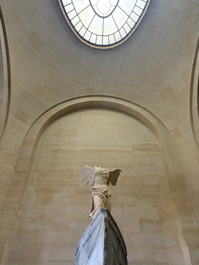 Rather than explore the ground floor with the antiquities, we first trudged up the famed Daru staircase and were greeted by the Winged Victory of Samothrace when we victoriously reached the top. After a few photos, and fanning ourselves, we followed the signs toward room 711. While the Mona Lisa was our main goal, we did observe other splendid works of art from the Italian Renaissance.