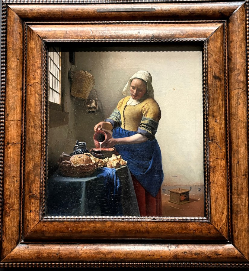 We also were able to see the work being done on what is arguably Rembrandt’s most famous painting, ‘The Night Watch of 1642.’ The painting was commissioned for one of the three headquarters of the civic guard of Amsterdam. This is Rembrandt’s largest painting and employs a technique called tenebrism, which uses light and dark to focus in on particular details. Operation Night Watch is being done in an enclosed area in view of the public. At time of writing, art restorers are working diligently with microscopic precision to remove the old varnish in order to preserve the painting for future generations to appreciate. According to the Rijksmuseum site, the research going into the project has spanned over the past five years, utilizing digital imaging, materials science, AI, and other advanced research techniques. Over the next two years or so, the old varnish will be painstakingly removed, and new varnish will be applied. We shall have to return in 2027 to see the finished results.
