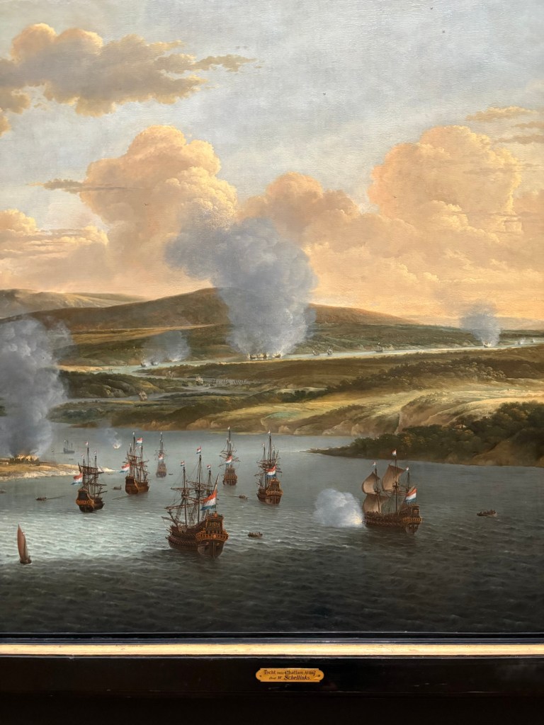 We walked through a gallery that was dedicated to the Netherlands military history. Several paintings depicted battles, including the Battle of Waterloo. There were also models of ships.
