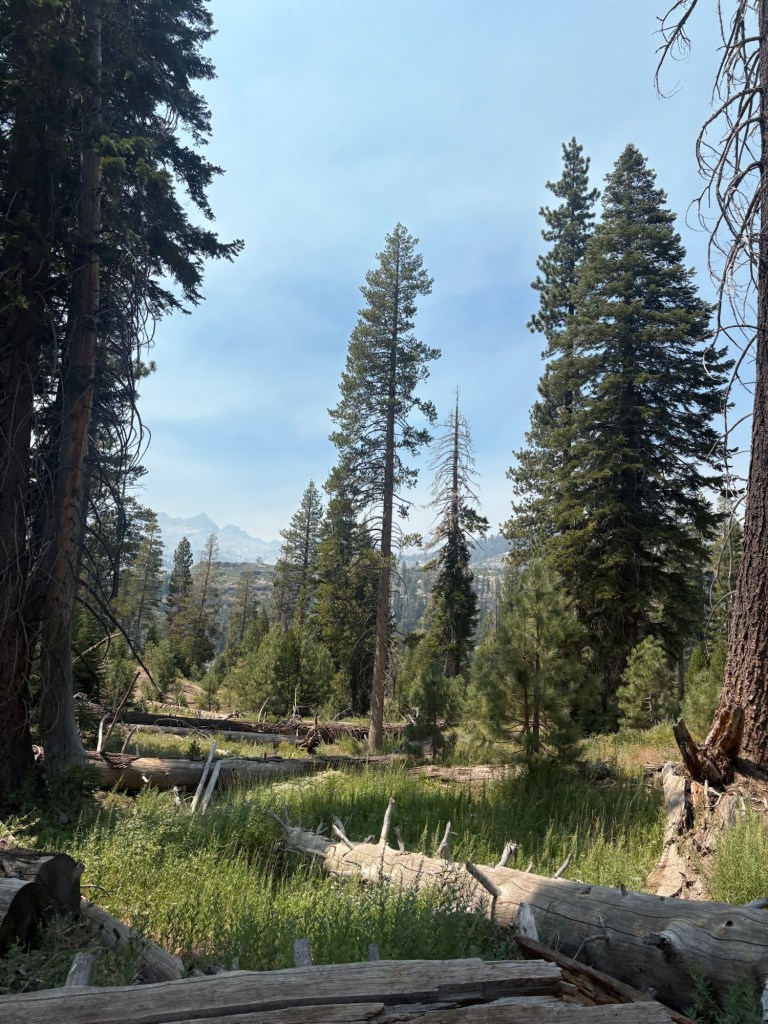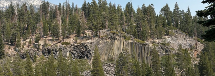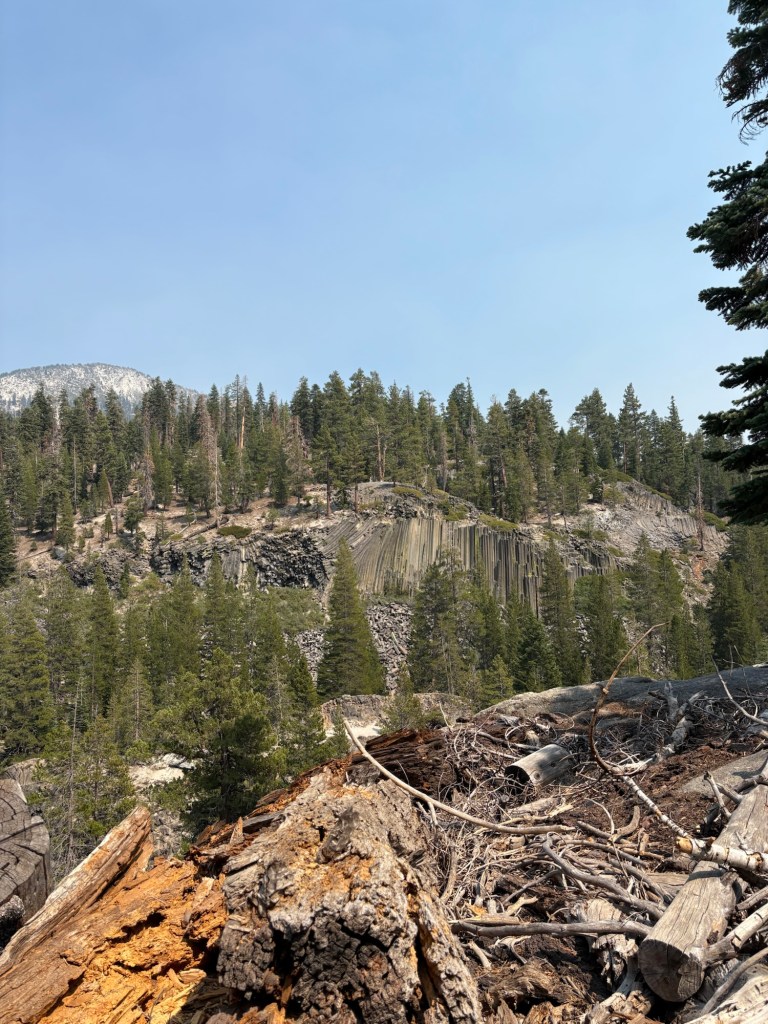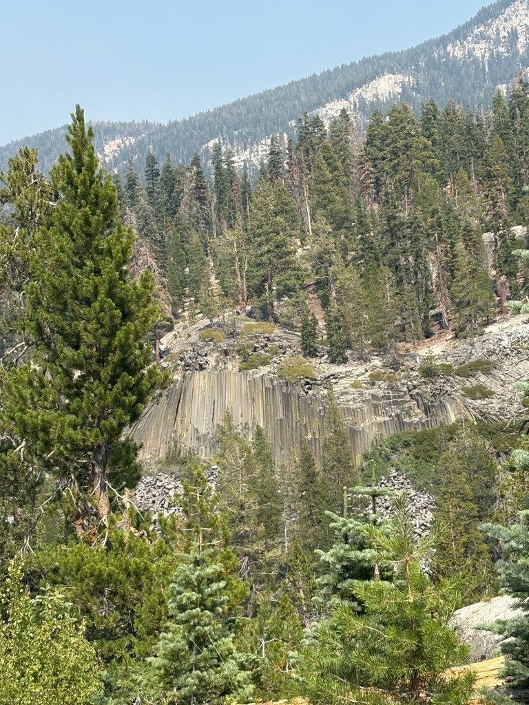 The John Muir Trail is a 211-mile wilderness trail, with 170 of those miles running mostly in conjunction with the 2653-mile Pacific Crest Trail, traversing the Sierra Nevadas from Yosemite Valley to the peak of Mt. Whitney. The JMT takes hikers through some of the most beautiful places: the John Muir Wilderness, Kings Canyon and Sequoia National Parks, Ansel Adams Wilderness, and so many more beautifully rugged places in California’s Sierras. We followed the JMT/PCT for just over a mile. The result was that it took us to the other side of the canyon, where we had a full view of the postpile.