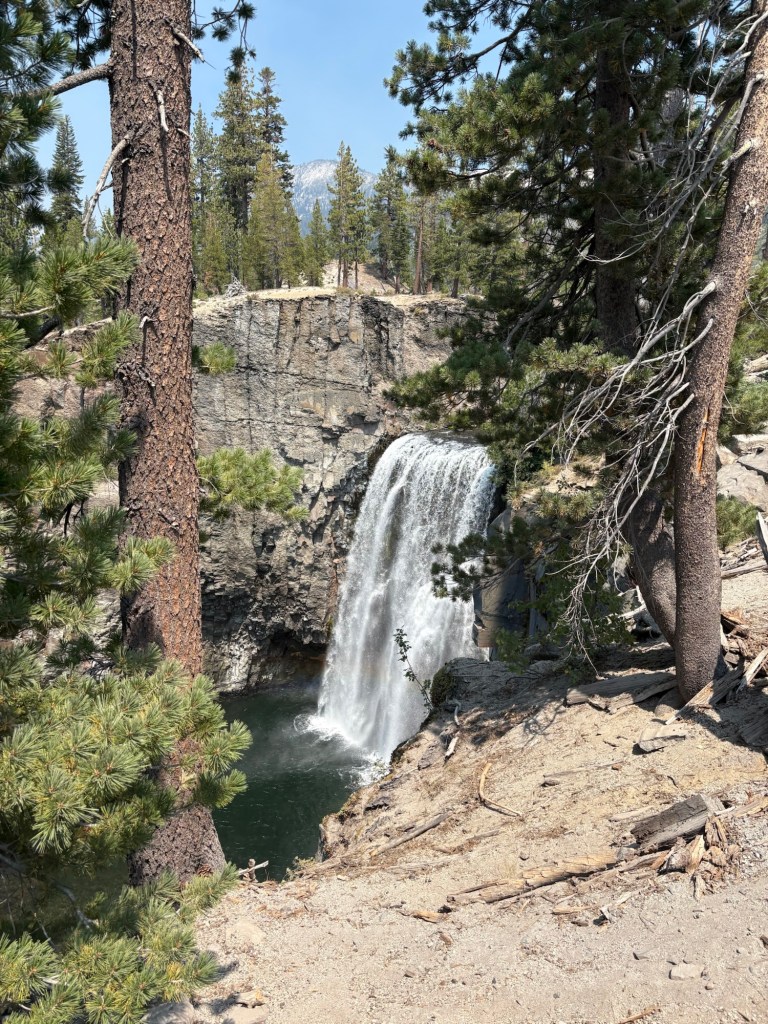 Rainbow Falls is the highest waterfall along the middle fork of the San Joaquin River, with a powerful cascade over a 101-foot high volcanic rock cliff. When the sun is shining, the mist catches the light creating the rainbows after which the falls are named. My photos did not do this justice, but if you zoom in, you can see the faintest trace of a rainbow.