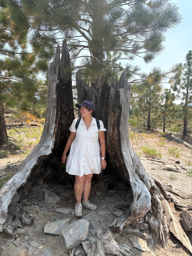 The trail to Rainbow Falls is considered moderate, with about 530 feet of elevation. The trail to the falls offers little shade, so I was applying sunscreen and wearing my trusty California bear hat. That said, we had a relatively short hike to the falls; stopping at the trailhead shaved off about a mile from our trek, energy that we would need for our return hike.
