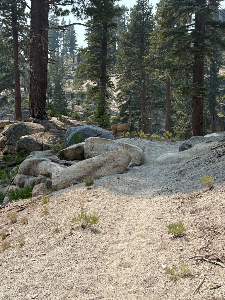 Devils Postpile is a great place to view wildlife. There are bears that live in the park, as well as mountain lions, deer, chipmunks, and more. We did get to see a deer with what looked to be a GPS tracker.