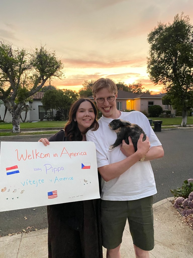 Pippa’s time in Prague, however, would be short-lived. About five months later, the apartment was packed up, and Pippa was driven through Germany to the Netherlands. The Hague would be home for a few months, before plans were finalized to try again in the United States. This time though, transporting the bunny would come with a few minor hiccups. For starters, it was significantly cheaper for them to fly FinnAir from Brussels to Los Angeles rather than departing from Amsterdam. So Mees and Pippa made the two-hour train ride from The Hague to Brussels, before boarding their flight to Helsinki. Before they boarded, however, Mees was hassled at BRU for Pippa’s passport. Not her vaccine passport obtained from a vet in The Hague, but her travel documents. Apparently, there was some confusion about what legal documents a little bunny would need for travel to the United States. Nevertheless, they were able to board their flight, and they arrived safely in Helsinki before making the eleven hour flight to Los Angeles International.