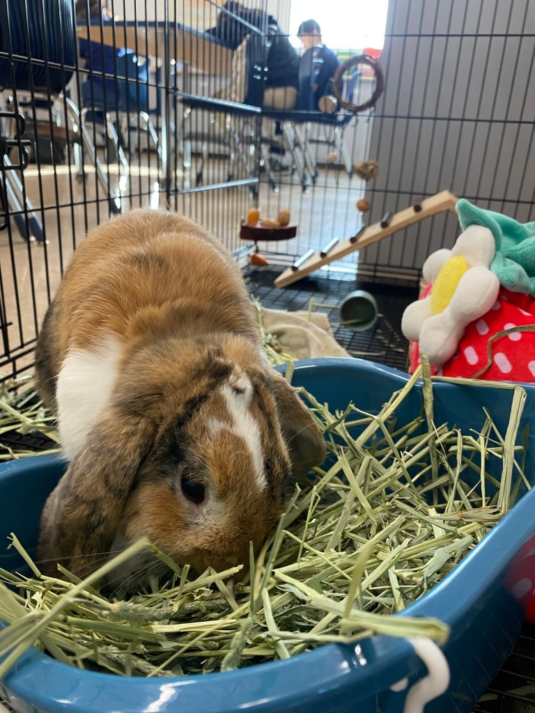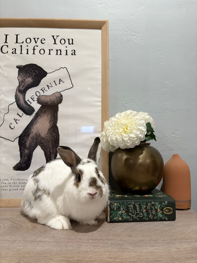 It was Sami who found Ollie on the Pasadena Humane website. We met Ollie about the third week of January 2023. But we didn’t adopt him straightaway. We wanted to make sure that we had adequate ‘housing’ for the bunny both at home and at school, along with a few other logistical considerations. Fortunately, my principal was on board with a class bunny, and the kids- my own kids as well as my students- were excited for a new bunny. So all things were in place for Ollie to come home, which he did on January 20, 2023. And he made an excellent addition to both our classroom family and our home.