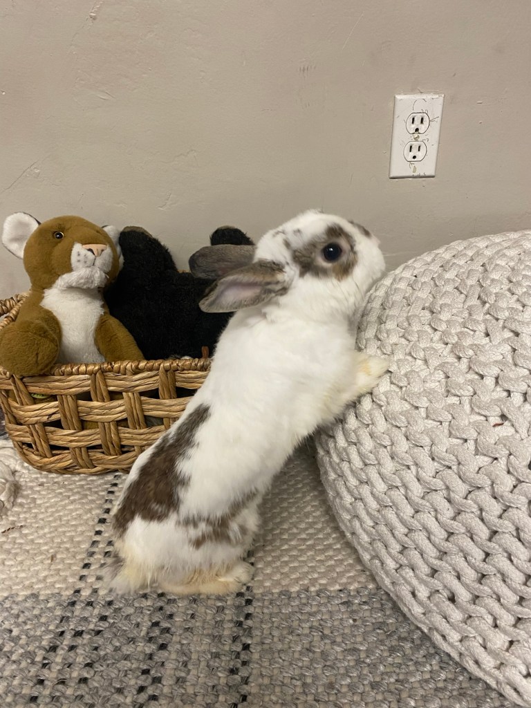 I adopted Oliver, a.k.a. Ollie, in January 2023. Ollie was found on a urine-soaked towel in Eaton Canyon and brought to the Pasadena Humane Society. After receiving medical care, he spent time in a foster home, where his sweet antics were documented and posted on Instagram. Meanwhile, I was looking for a class pet to brighten up my middle school science and math classes following the death of Pumpkin Spice, our beloved class hamster. I was considering a fluffy friend small enough to be school-appropriate, but larger (and with more longevity) than a hamster. I was leaning toward rabbit, and the Google survey I posted to my classes yielded a tie between bunny and snake for the preferred pet. So bunny it was.