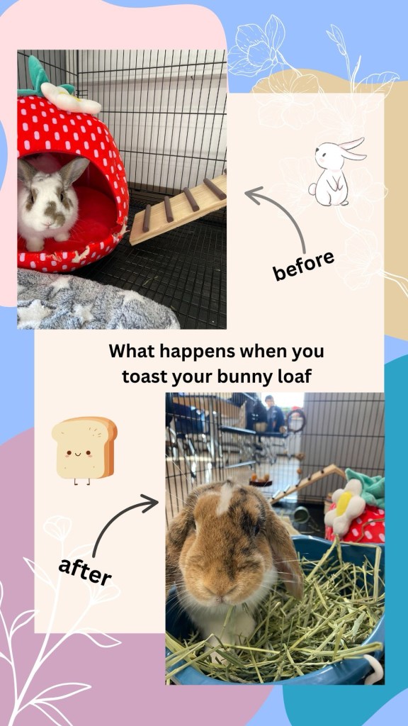 The plan was to have Scout stay with us for a few months, then Emily and Mees would pick her up when they returned after getting his visa. Unfortunately, the American immigration system is not known for being fast or efficient, and a couple months turned into a couple years. But fortunately for Baby Scout- who had acclimated easily to the sunshine, fresh veggies, and large yard for hopping- she would have more time in her new home with her grand-bun parents. She even accompanied me to class as an April Fools prank earlier this year, when I brought in a ‘toasted loaf.’ My students loved it, especially since we had started standardized testing that week. And Baby Scout loved the attention and extra treats.