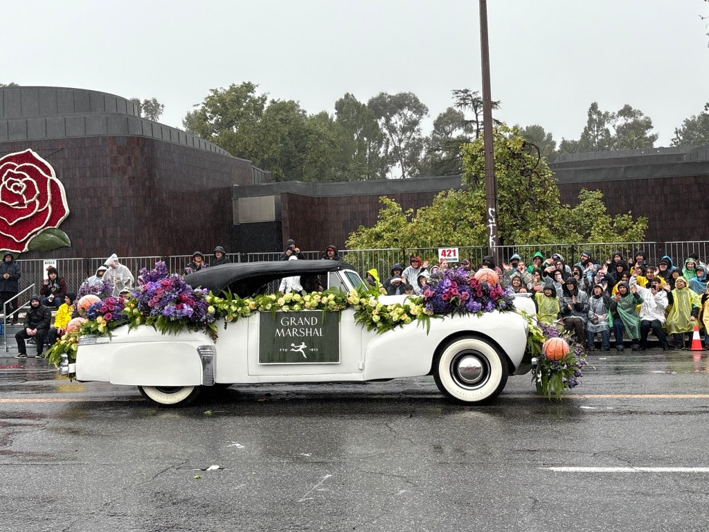 The 2026 Tournament of Roses Grand Marshal is famed NBA star, businessperson, and philanthropist Magic Johnson. Johnson spent his basketball career playing for the Los Angeles Lakers, and currently is co-owner of the Los Angeles Dodgers. As one who uses his resources and influence to give back to the community, Johnson has supported recovery efforts following the Eaton Fire. In January 2025, he was awarded the Presidential Medal of Freedom, the highest honor given to a civilian, for his work in business, philanthropy, and sports here and abroad. It was a bummer that the weather kept the tops up, but we could see him waving to the crowds from inside the vehicle.