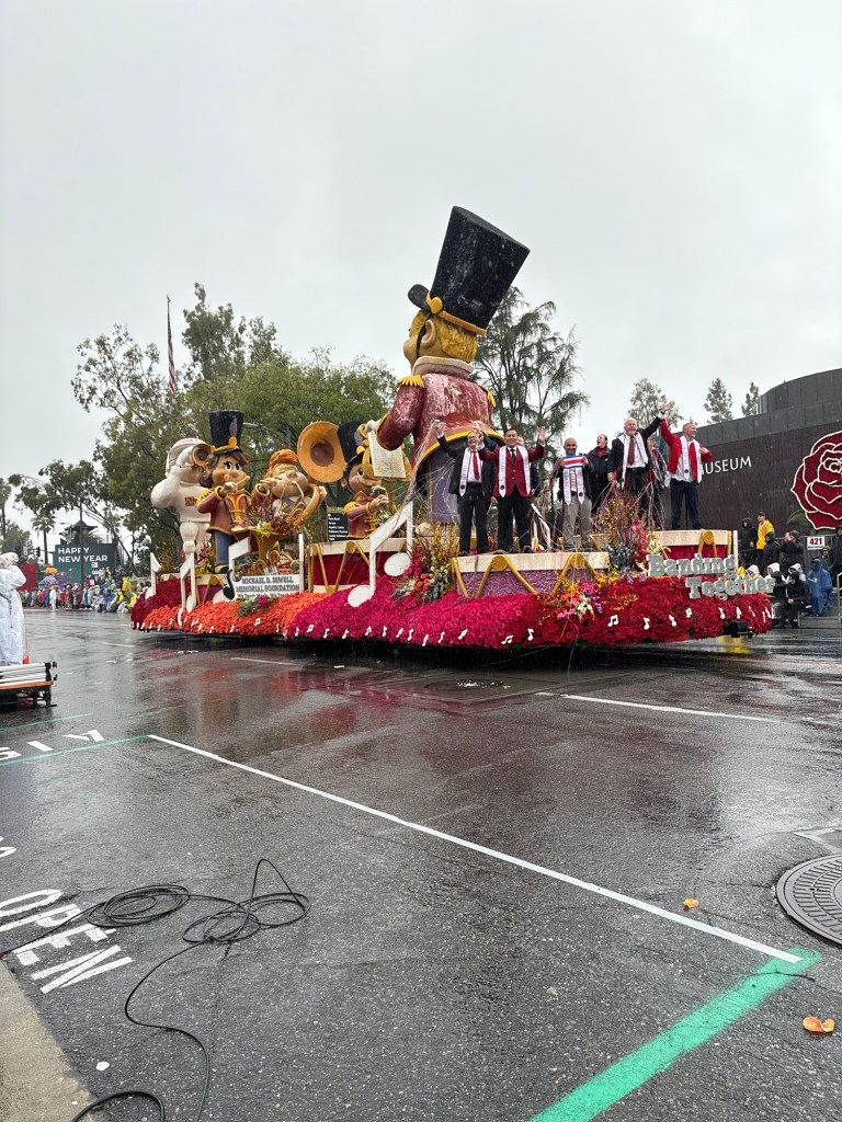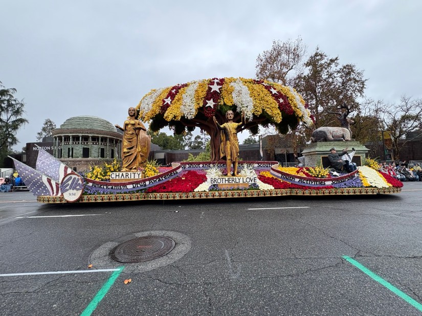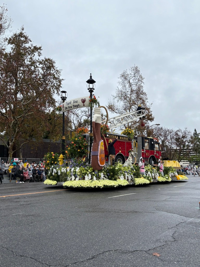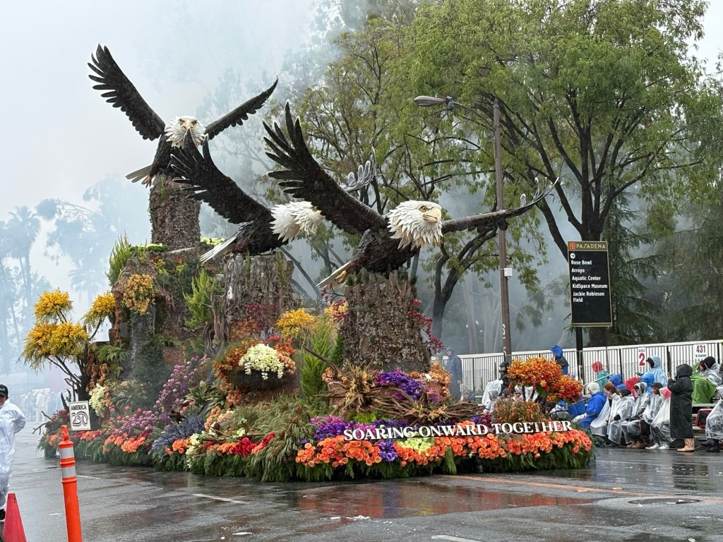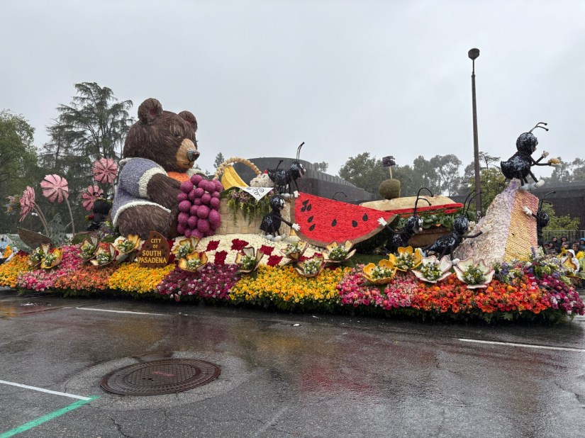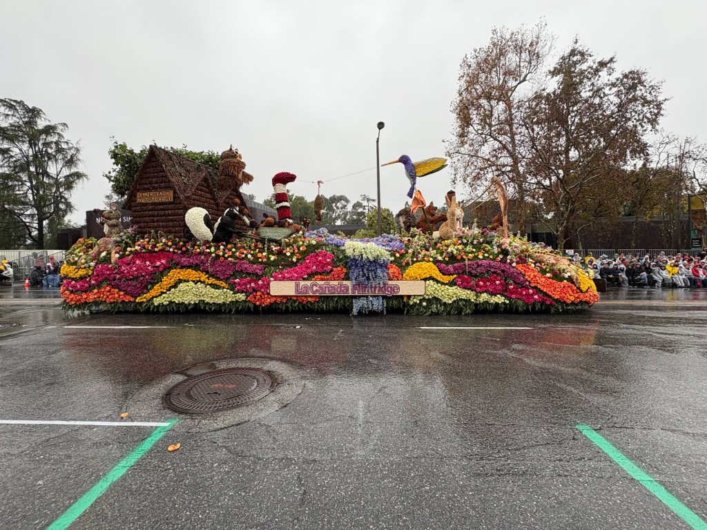 In Harmony We Serve from Lions International features four lions rowing together in a canoe in a scene made from strawflowers, marigolds, carnations, statice, and bougainvillea.San Diego Zoo’s “Giant Strides Together” depicts mighty elephants, graceful cranes, and playful zebrasThe Cal Poly Universities entry, “Jungle Jumpstart” creatively considers the connection between nature and technology in a playful jungle scene made up of roses, pampas grasses, chrysanthemums, and citrus peels. The Cal Poly students watching the parade across the street from my vantage were high energy and fun. They truly take pride in their work!The City of Santa Fe Springs, CA “Honoring the Past, Celebrating the Present, and Inspiring the Future.” I just like it because of the train depiction.Visit Mississippi’s entry and the mid-parade performance with singer Charlie Worsham.Naughty black ants steal a poor bear’s picnic lunch in South Pasadena’s entry, “The Great Picnic Heist.” The scene was created from a variety of seeds, beans, fresh and dried flowers, and moss.For all you Trekkies out there, “Space For Everybody” celebrates the 60th anniversary of Star Trek, going boldly over constellations and Vasquez Rocks. The scene was created from coconut, lettuce seed, blue statice, black seaweed, and colorful anthuriums.My neighbor to the west and city in which I work: Alhambra. “Bee Magical Together” was inspired by a student in Alhambra Unified and captures the spirit of community. It does appear that the detailing on the bee’s head was impacted by the wet weather, but the float is still a colorful masterpiece.Explore Louisiana’s whimsical float, “Gulf to Gumbo” with mid-parade entertainer John Foster.Unfortunately, Downey’s rose float needed some help from the real parade heroes: AAA. “The Glow of Achievement” depicts the glowing lanterns of Diwali in colorful blooms. Despite some controversy over the float’s audio (which was pulled), the Sierra Madre Float Association pays a whimsical tribute to the city’s dedicated firefighters. The scene depicts a Sierra Madre truck made from red carnations, black sesame, and seaweed with a moving ladder operated by an SMFD firefighter. The stack of syrup-covered pancakes is made from cornmeal, chrysanthemums, and roses. City of Torrance “Together in Harmony” “Elks Care Elks Share” celebrated 100 years of Elks service to communities. The float highlights the Elks’ four virtues: Charity, Justice, Brotherly Love, and Fidelity, and lists initiatives that help youth, veterans, and drug awareness. Travel South Dakota “Carved In Stone: A Legacy of Teamwork” highlights South Dakota’s famous landmarks, rugged wilderness, and traditions.City of Burbank’s “All Paws on Deck” features a playful ship pirated by feathered and furry friends created with melaleuca, pine needles, coffee, pampas, and other botanical materials.City of Hope “Overcoming Cancer and Diabetes Together” showcases a serene garden beautifully created with white rice, blue statice, silver leaf, mums, and greenery. La Canada Flintridge “Goin Nutz” depicts a humorous scene where cleverly naughty critters creatively cooperate to deliver nuts from their emergency supply to critters in need. I absolutely loved this two-part float. “Banding Together” from the Michael D. Sewell Memorial Foundation celebrates music educators across America. The band following the float is composed of band directors across the country. “Rising Together” pays tribute to the strength and community spirit of Altadena, Pasadena, Malibu, and Pacific Palisades after the devastating wildfires in January 2025. The 31 California poppies featured on the float honors the 31 lives lost in the fires. The Odd Fellows and Rebekahs “Together We Grow” features playful bunnies and critters celebrating teamwork and community flourishing.In honor of the 250th anniversary of the signing of the Declaration of Independence, Soaring Onward Together features three graceful bald eagles soaring over America’s wildernesses.