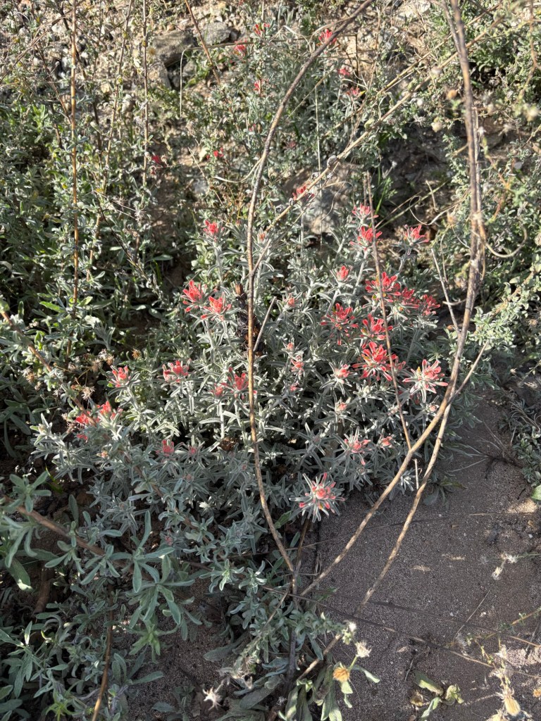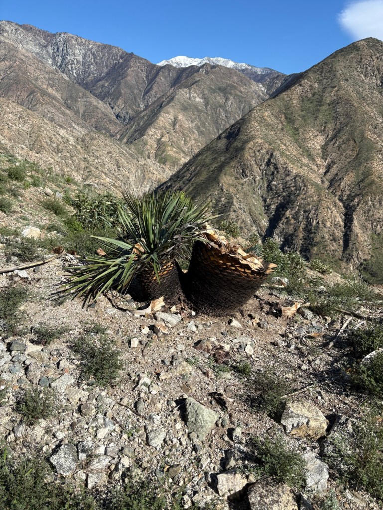 There is evidence of fire along the trail. Many yucca and other hardy succulents were burned in the Bridge Fire. There were also several trees to the side of the trail that suffered fire damage. Burned vegetation can pose hazards as damage to their root systems and trunks can weaken them and make them susceptible to falls. I did not see too many burned plants along the trail itself that appeared inherently dangerous other than a few tall yucca, but even these can become a hazard.